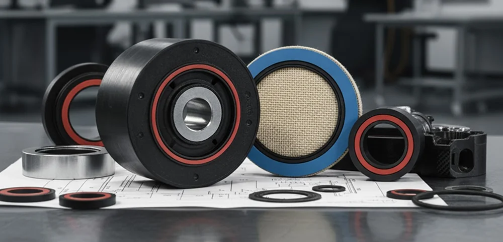 Verbundformteile verbinden Elastomer mit anderen Materialien wie Metall, Kunststoff oder Gewebe, um kombinierte Eigenschaften zu erzielen. Freudenberg Sealing Technologies setzt sie dort ein, wo Einzelmaterialien an ihre Grenzen stoßen – etwa bei hoher Belastung, Gewichtsreduktion oder integrierter Funktion (z. B. Sensorik).